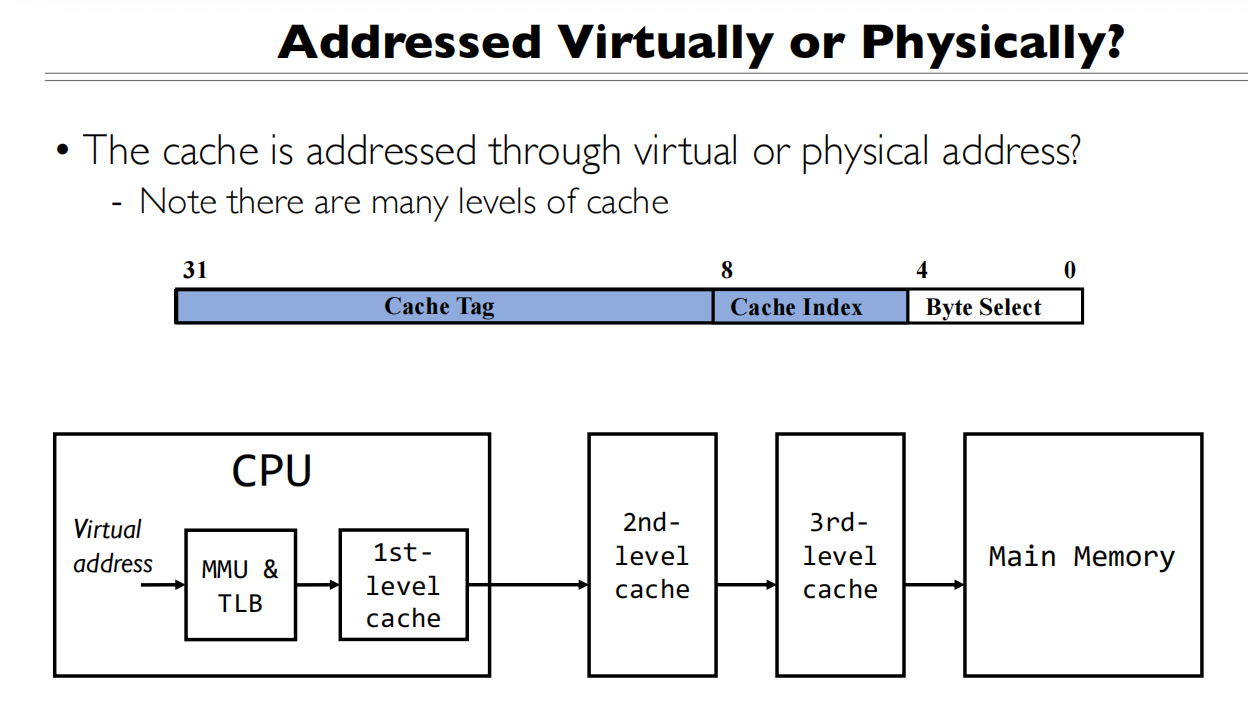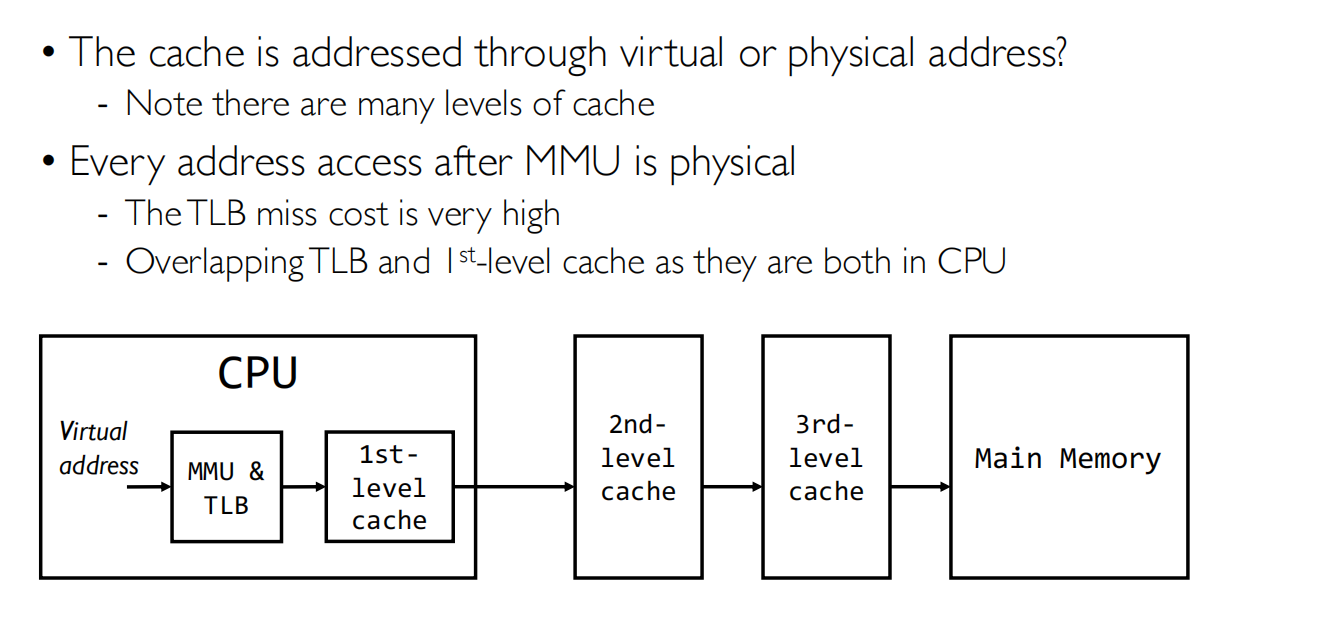- Cache可以在TLB还在查询的同时,就开始定位可能的数据