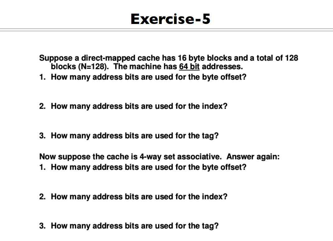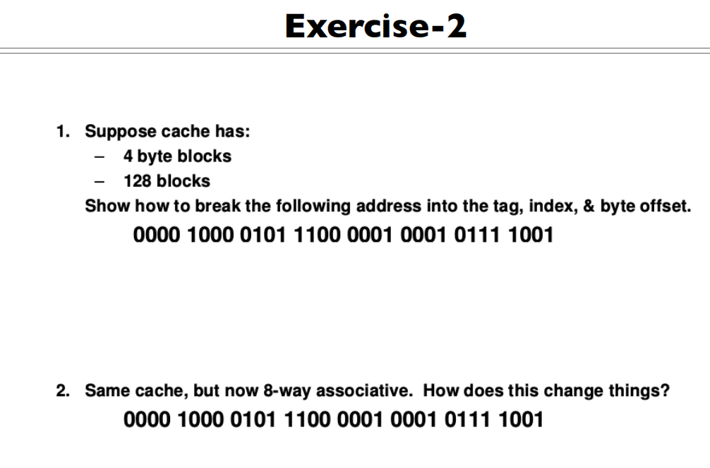 | Tag size(#bits) | 地址长度-7 | 地址长度-7 |