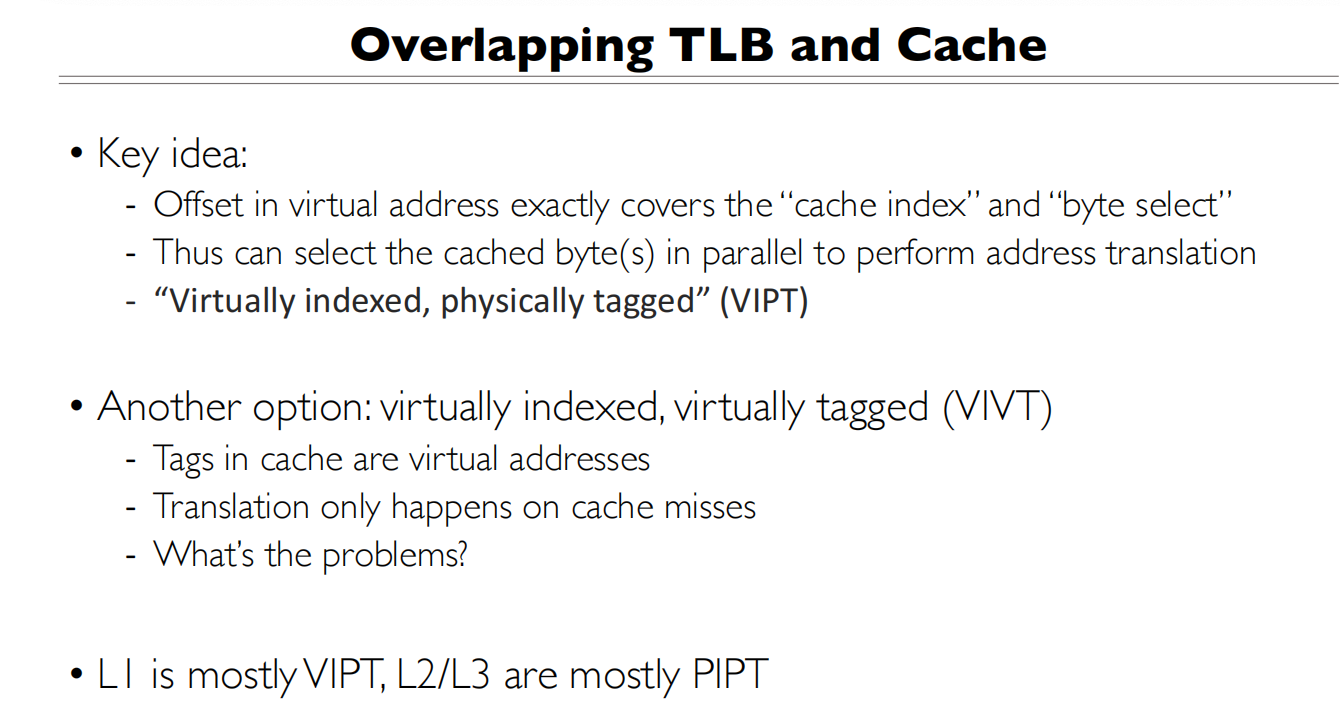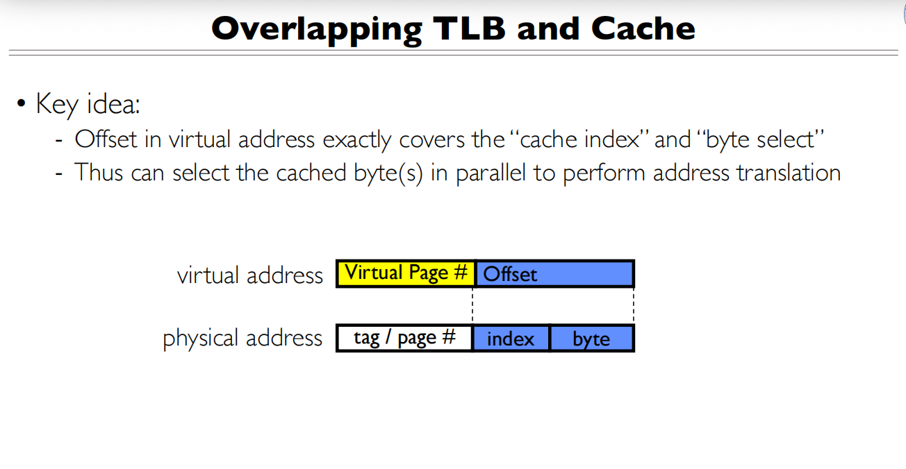 - 理想情况是TLB查询和Cache查询能够并行进行