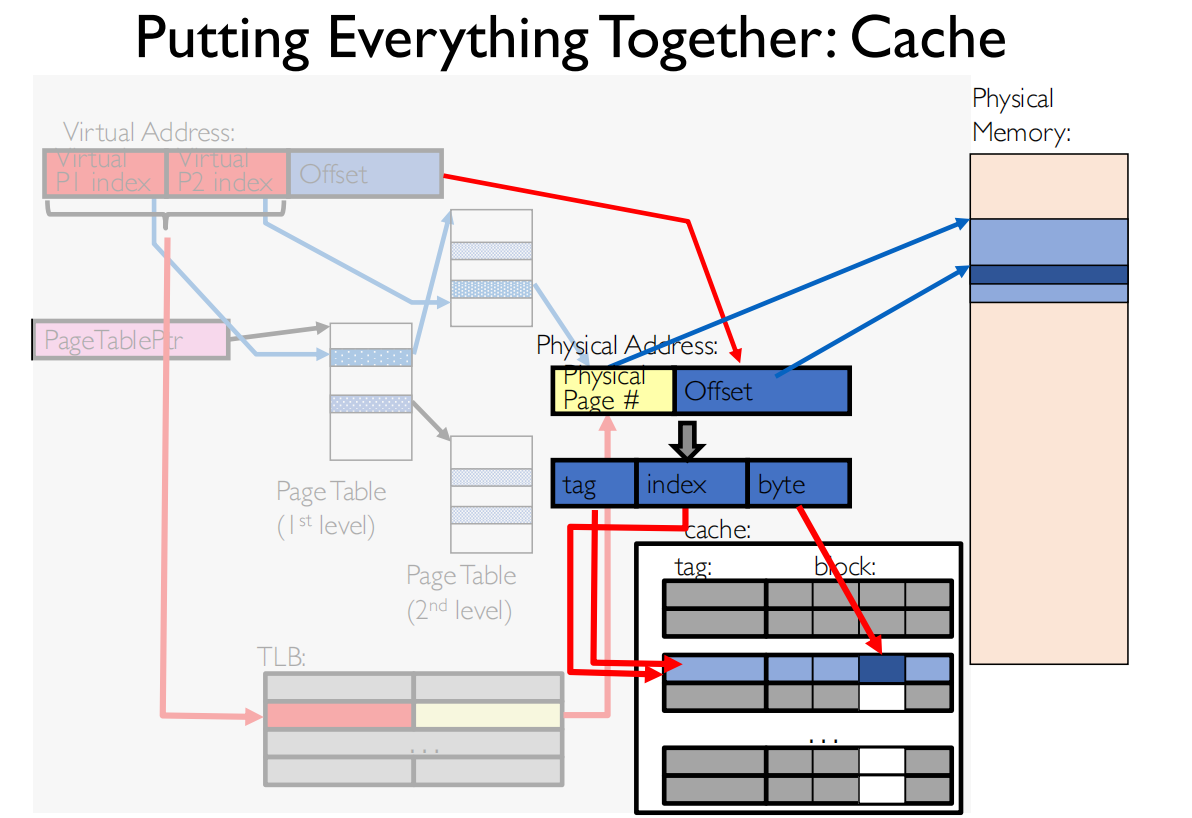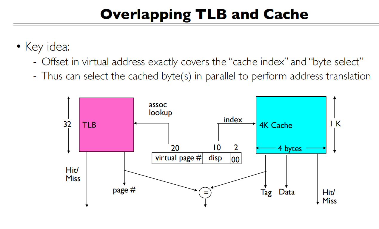 - 因此可以直接用虚拟地址的Offset部分来访问Cache,无需等待地址翻译