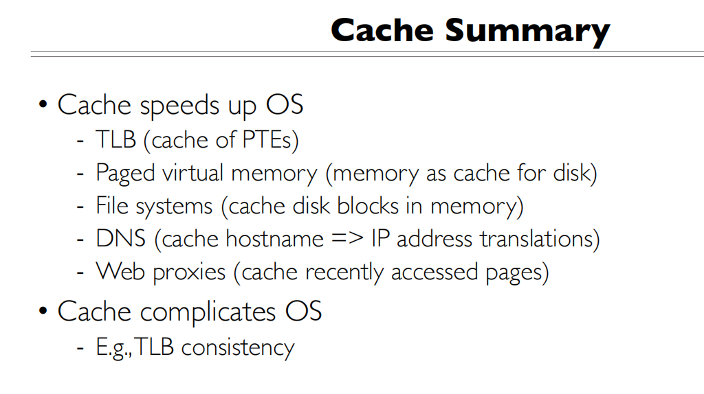 - File systems (cache disk blocks in memory)