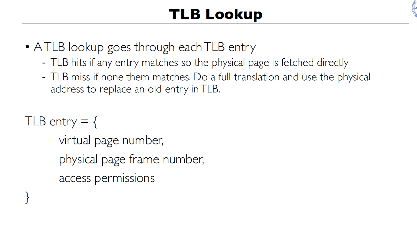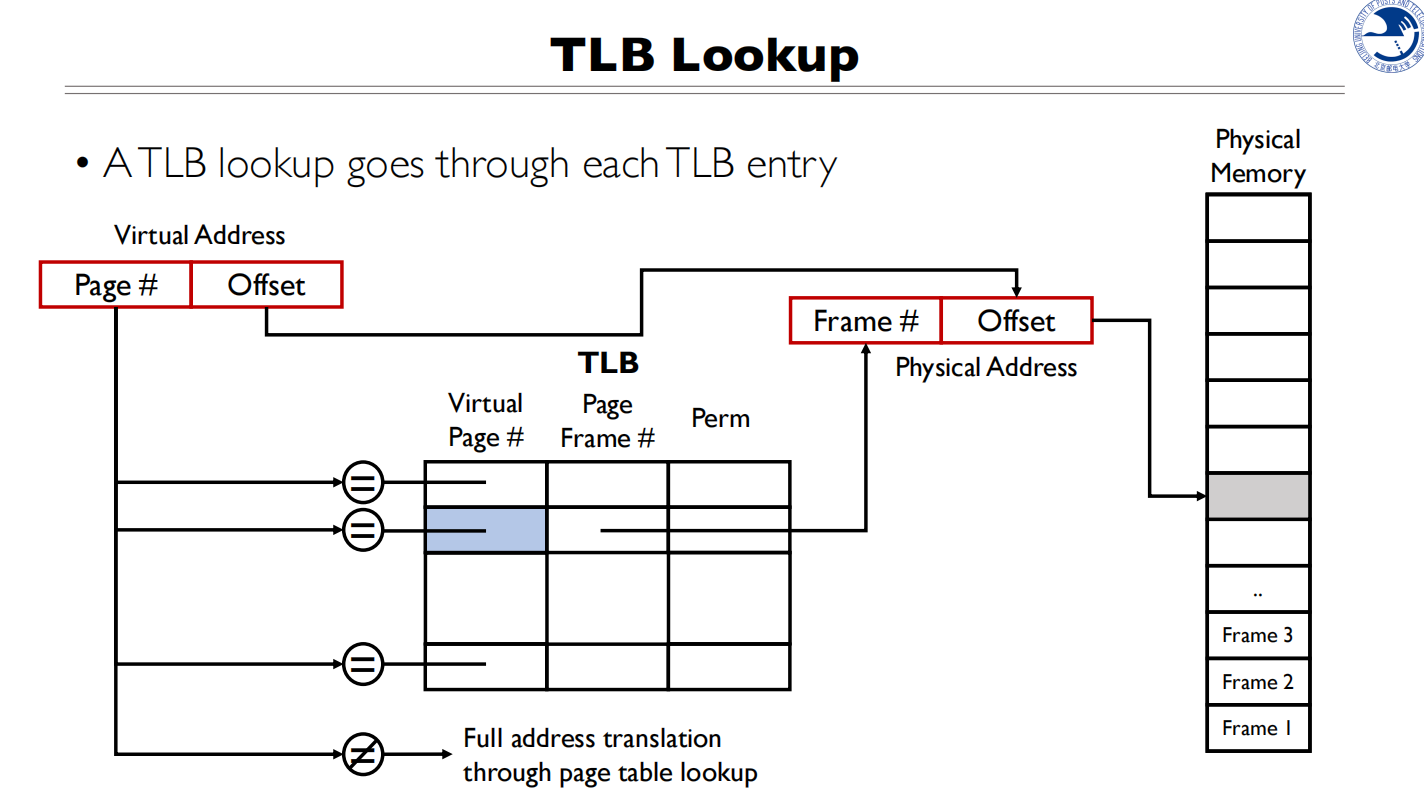 - TLB会返回对应的物理页号