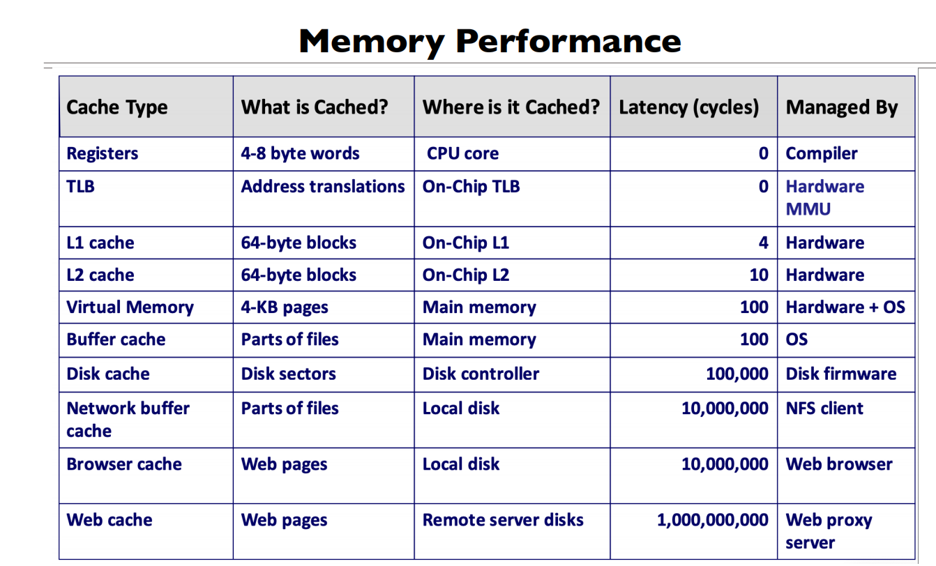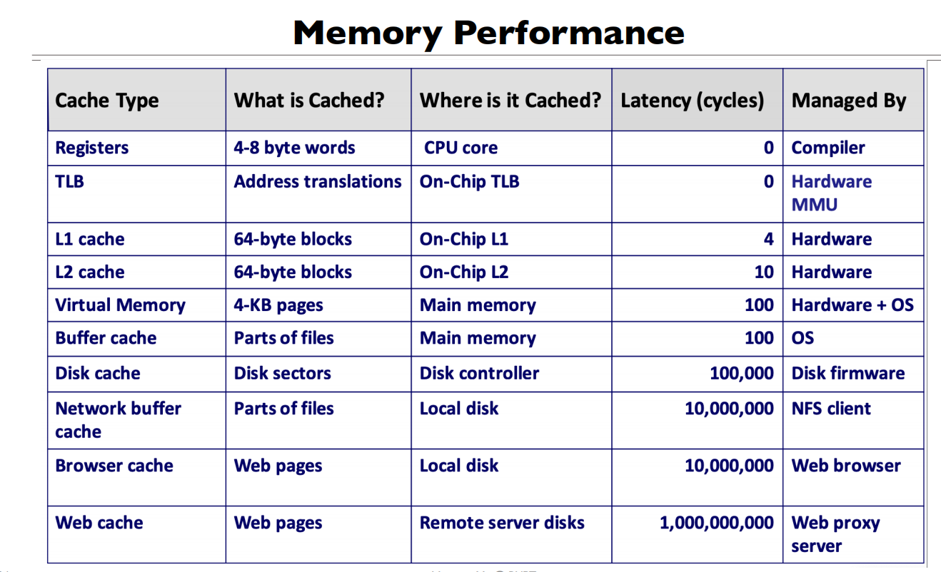 - Cache (cache of main memory, many levels)