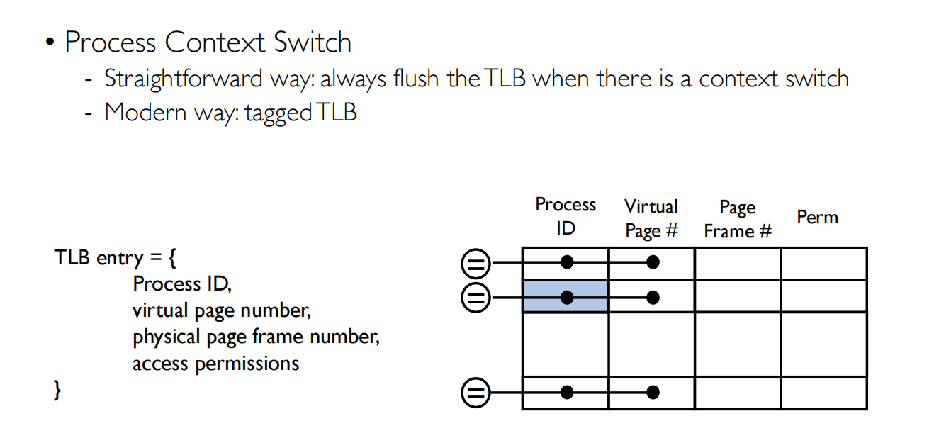 tagged TLB加入了进程ID,不需要丢弃,会去匹配进程ID,匹配上即可