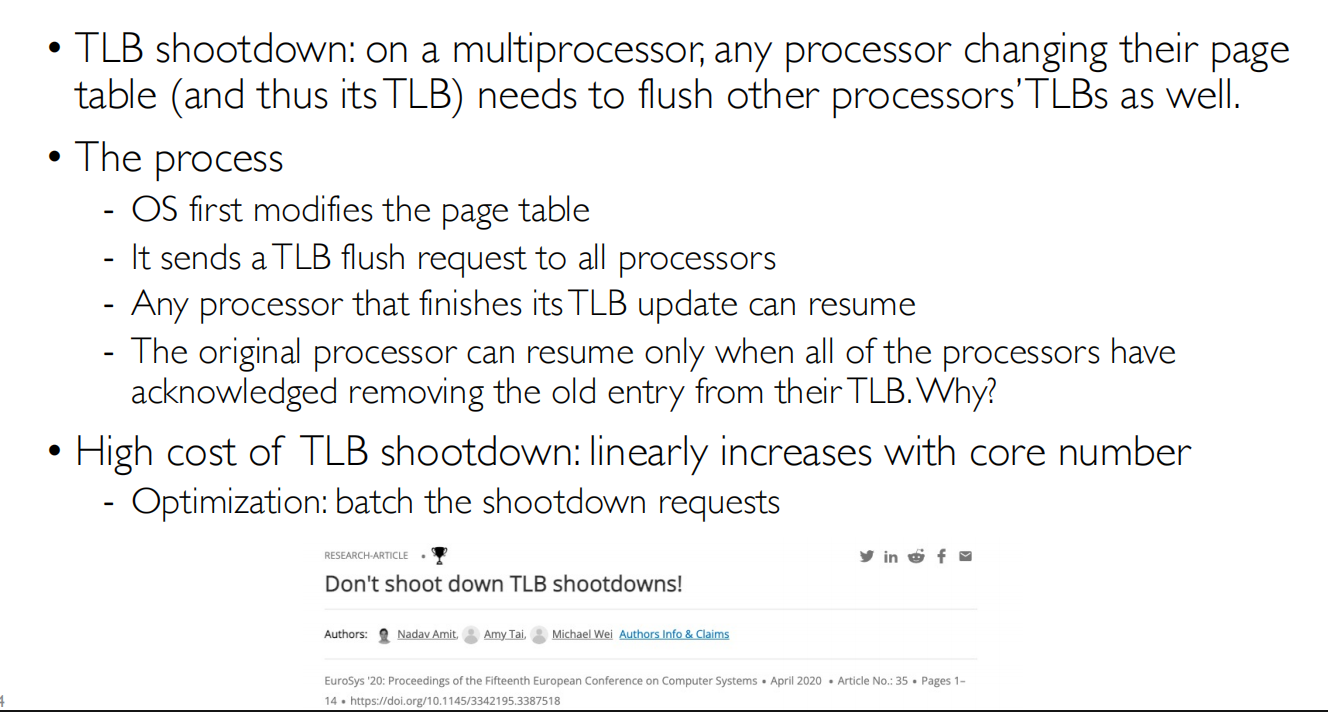 - TLB shootdown