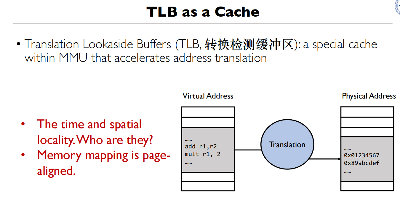 - TLB是一个缓存,存储最近使用的虚拟地址到物理地址的映射