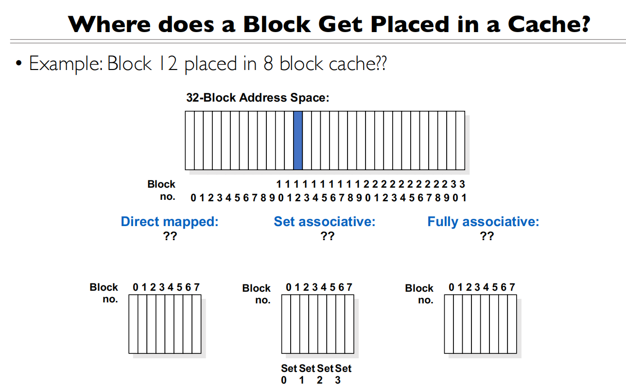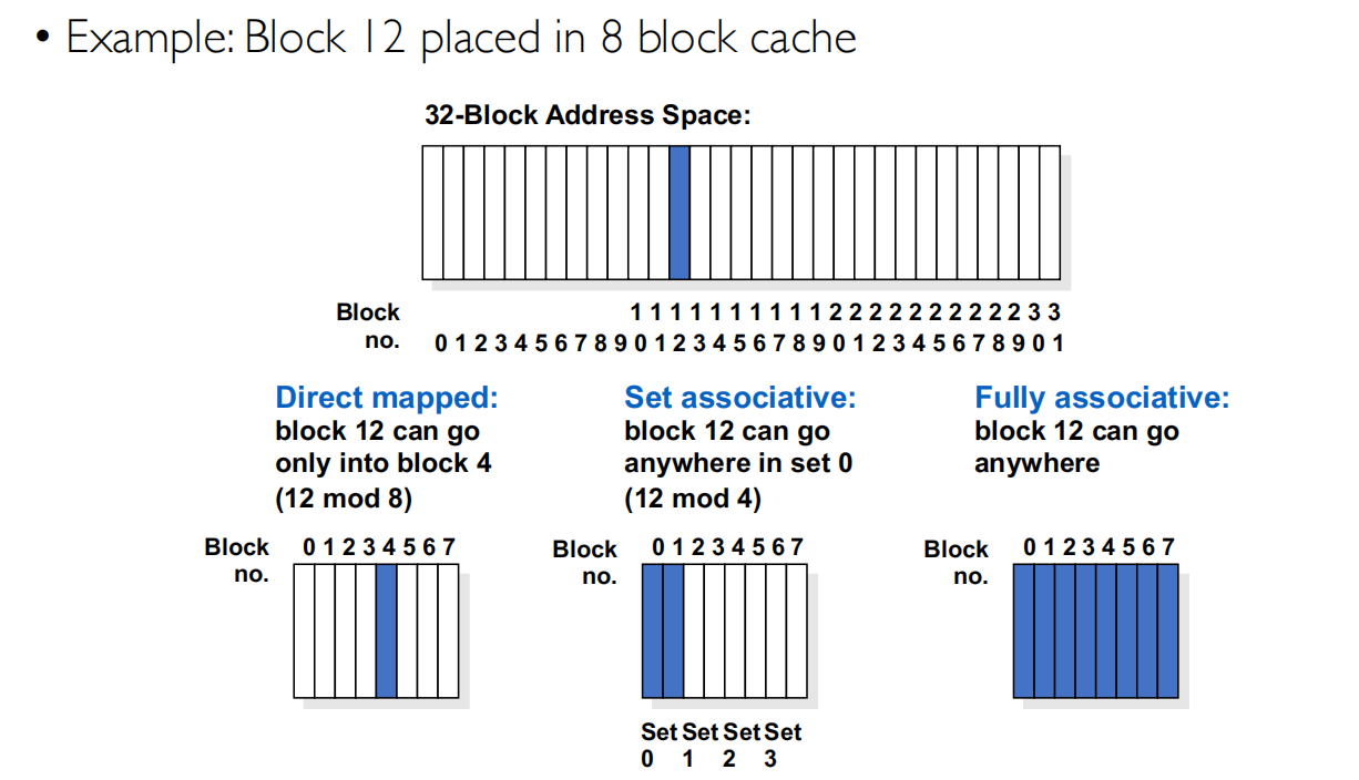 - 全相连缓存中,任何数据块可以被放置在任何缓存行中
