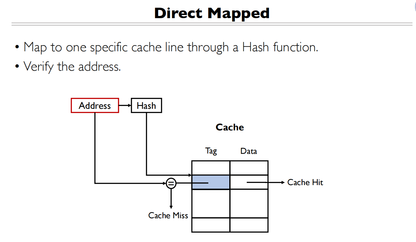 直接映射:任意一个地址只能存在其中某一个行