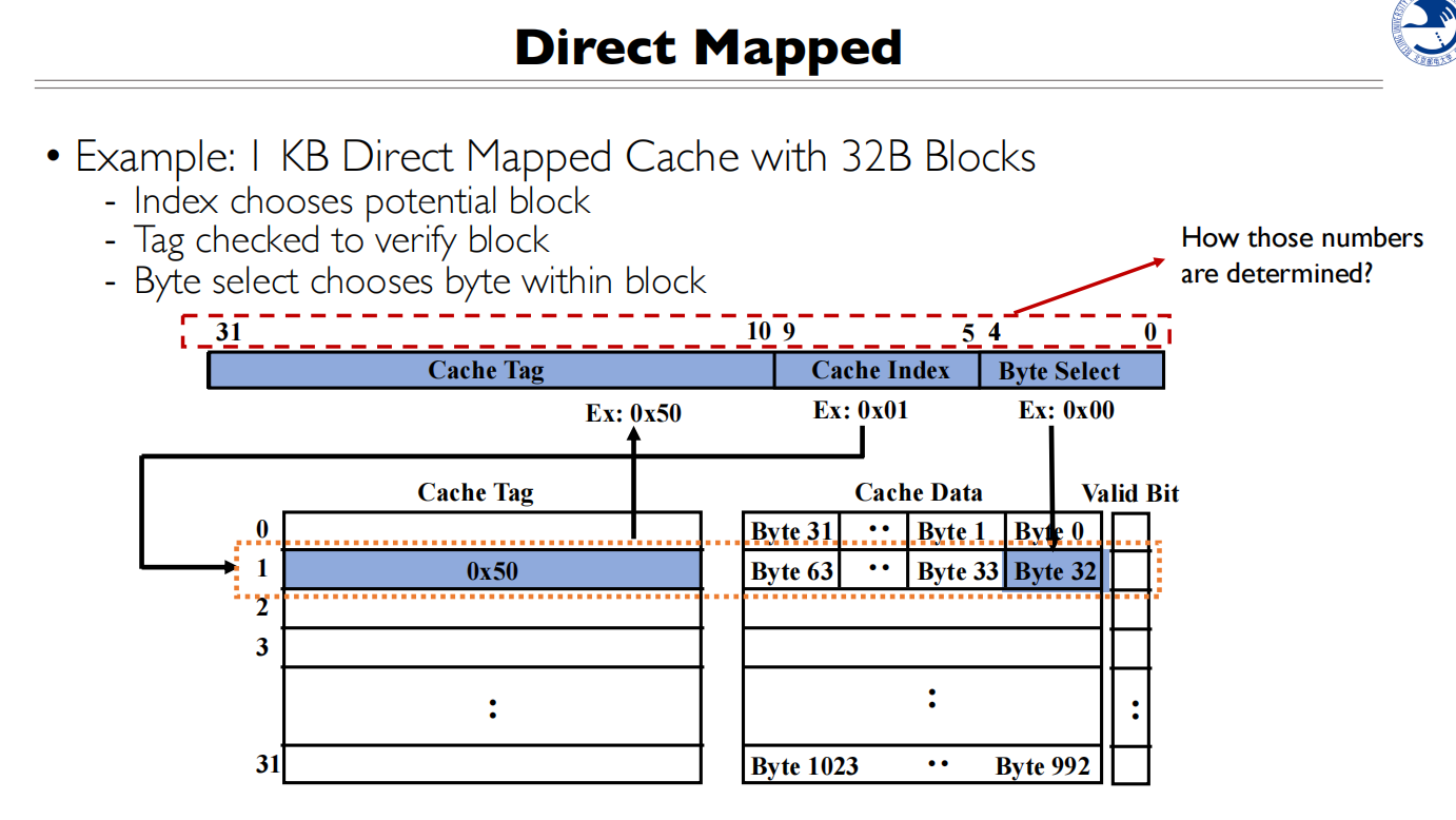 Cache Index 取决于Cache Line 的数量,所以需要5 bit 来确定存在哪一个Cache Block