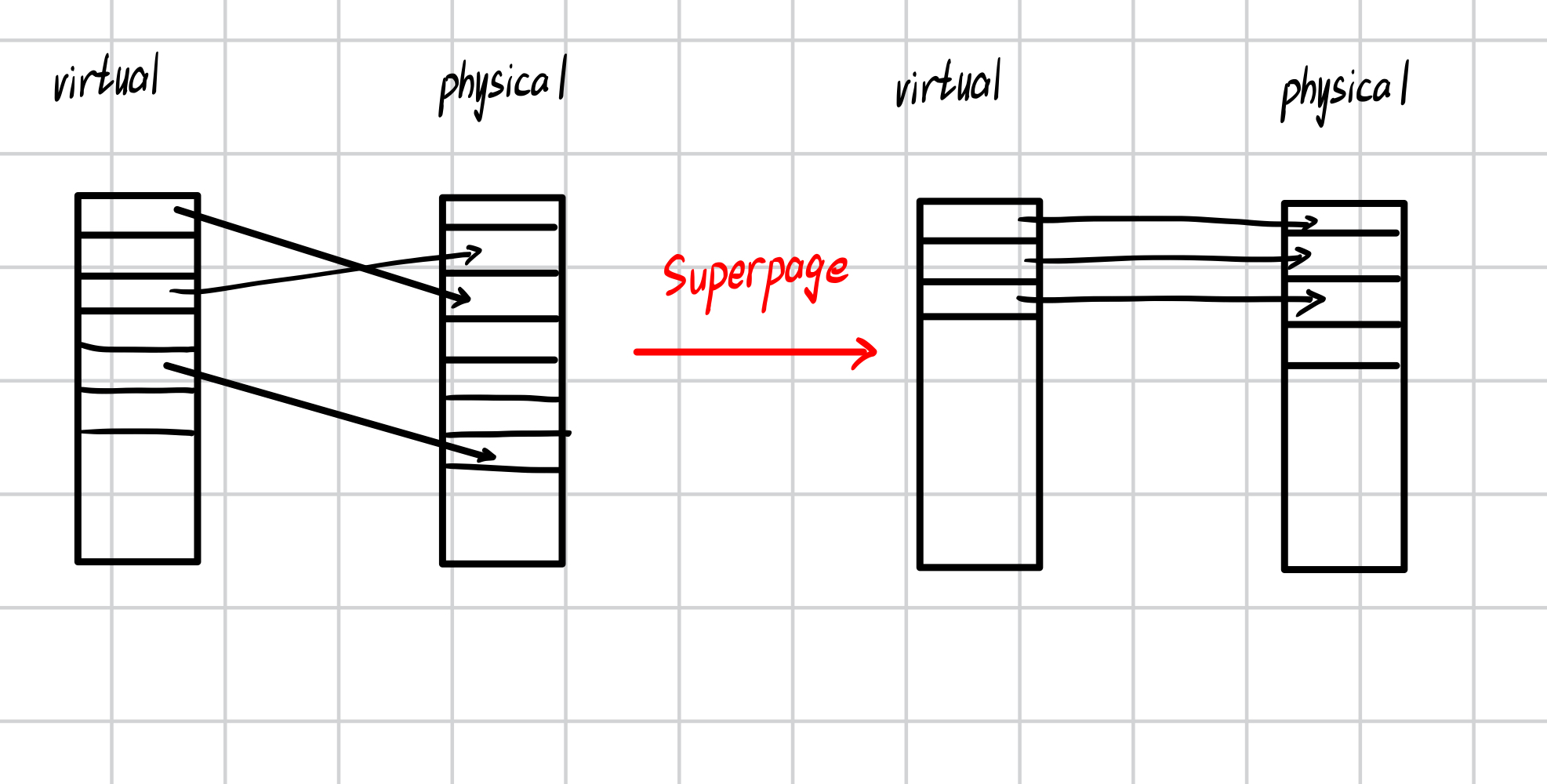 - 超页减少了需要缓存的页表项数量