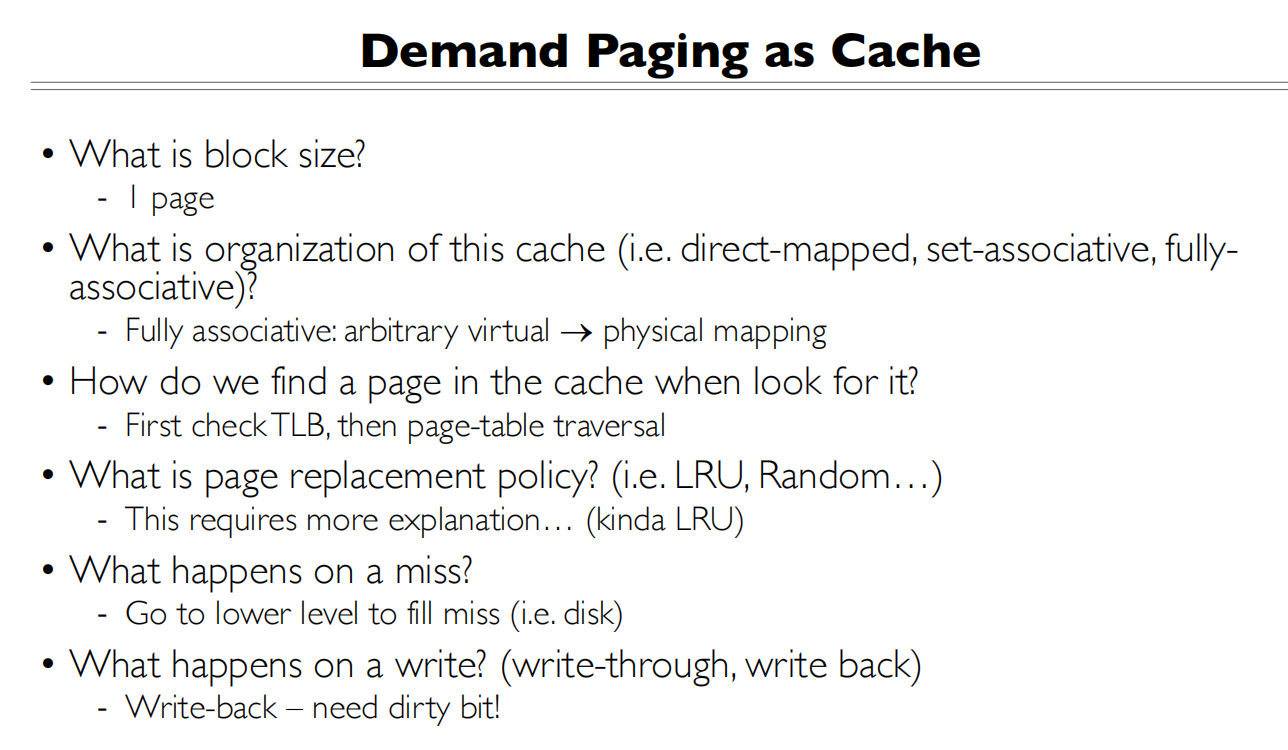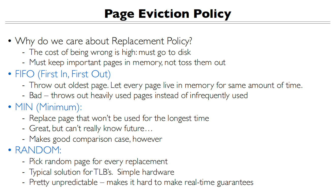 - OS: page table manipulation, eviction strategy, page fault handler, etc