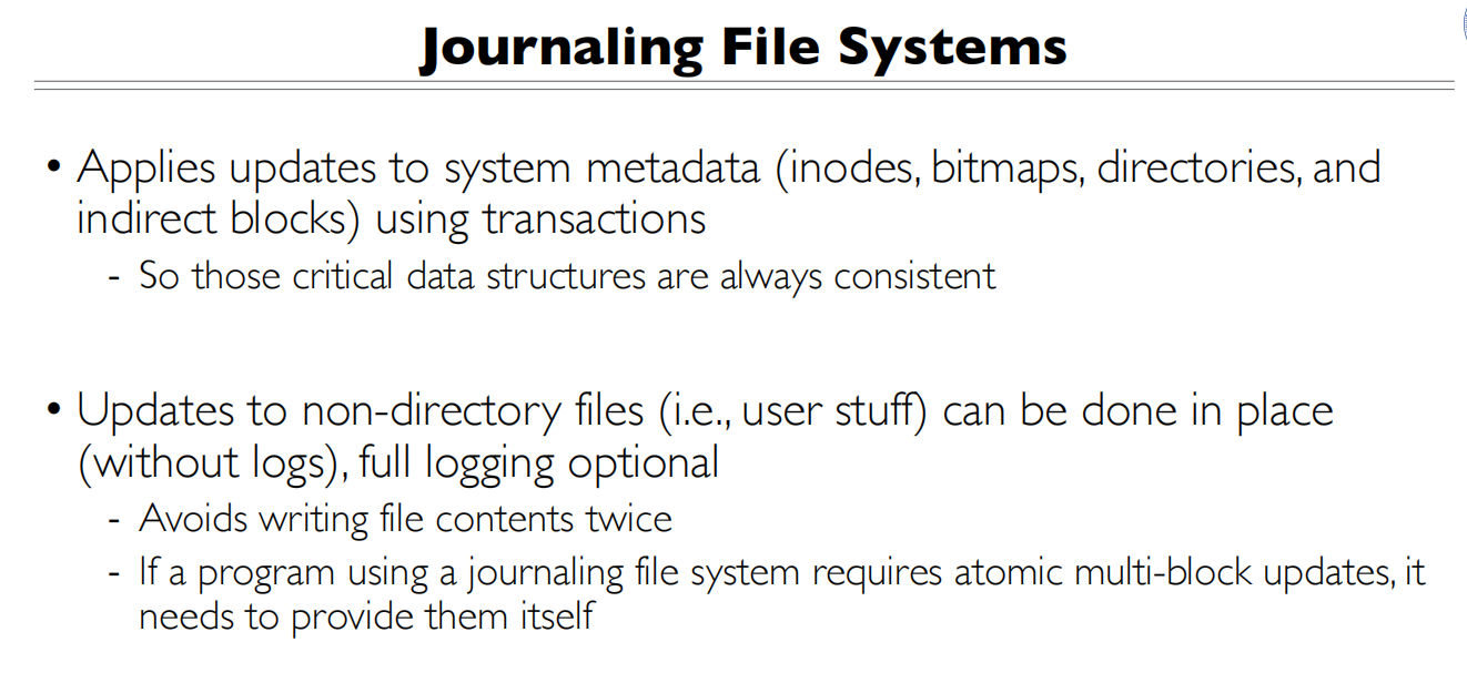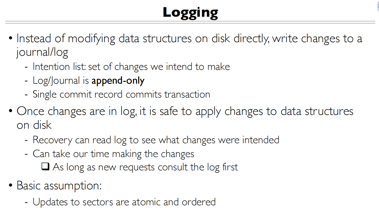 Jounaling:不完全做logging,性能少损失,没法保证完全的可靠性