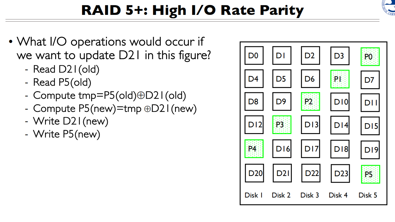 如果更新D21,需要更新P5,所以需要做2次读和2次写操作